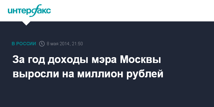 Москва. 8 мая. INTERFAX.RU - Доходы мэра Москвы Собянина в 2013 году возросли почти на миллион рублей. Это следует из сведений о доходах и имуществе, опубликованных на официальном портале мэра и правительства столицы