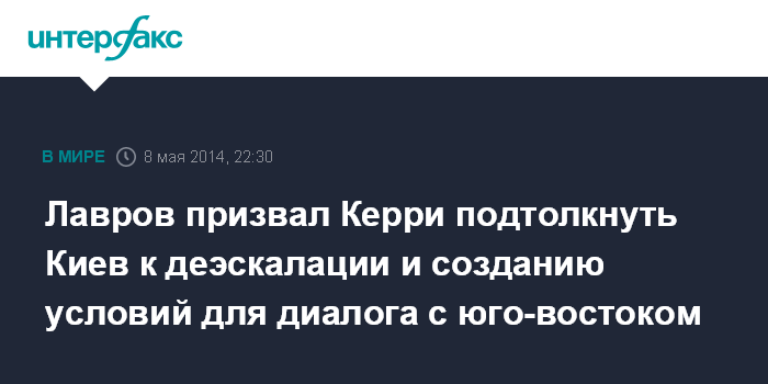 Лавров призвал Керри подтолкнуть Киев к деэскалации и созданию условий для диалога с юго-востоком