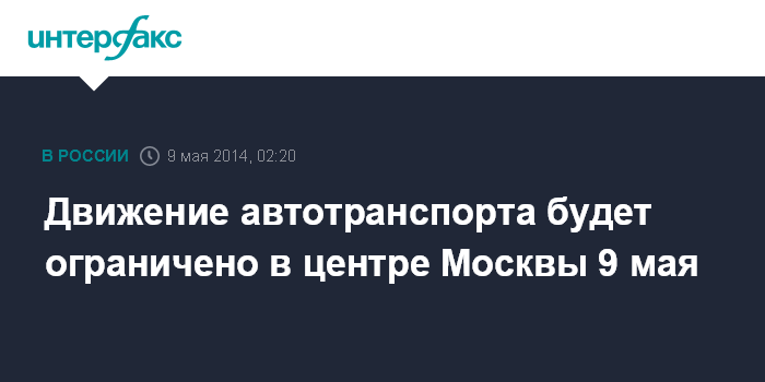 Москва. 9 мая. INTERFAX.RU - Центр города будет перекрыт для движения автотранспорта 9 мая в связи с проведением праздничных мероприятий ко Дню Победы, сообщил журналистам врио начальника Управления государственной инспекции безопасности дорожного движения столичного главка МВД Владимир Томчак.