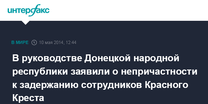 В руководстве Донецкой народной республики заявили о непричастности к задержанию сотрудников Красного Креста