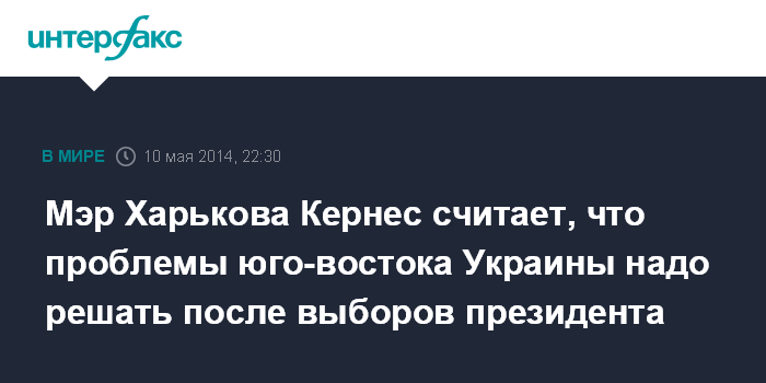 Мэр Харькова Кернес считает, что проблемы юго-востока Украины надо решать после выборов президента
