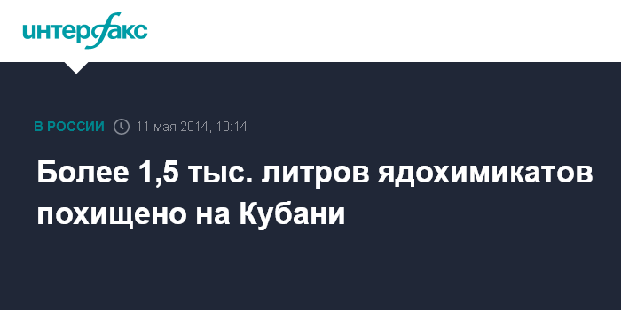 Москва. 11 мая. INTERFAX.RU - Ядохимикаты более чем на 3 млн рублей похищены с территории коммерческой фирмы в Краснодарском крае, сообщил "Интерфаксу" источник в правоохранительных органах в воскресенье.