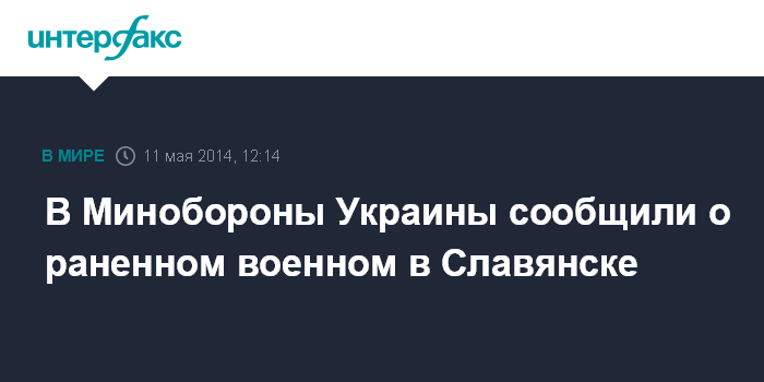 Москва. 11 мая. INTERFAX.RU - В Славянске Донецкой области ранен один украинский военнослужащий, сообщает министерство обороны Украины. По данным военного ведомства, минувшей ночью ополченцы в городе Славянск "совершили минометный обстрел личного состава подразделения Вооруженных Сил Украины, который охраняет телевышку на горе Карачун".