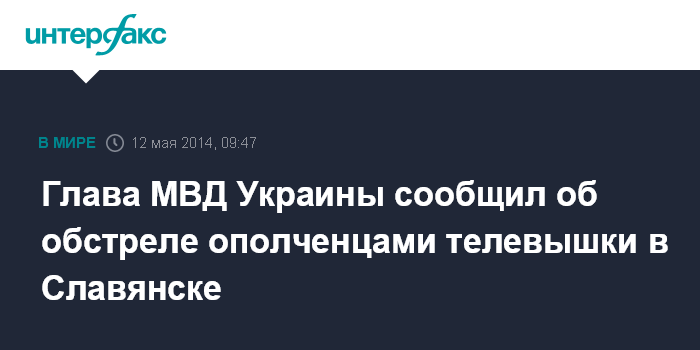 Москва. 12 мая. INTERFAX.RU - Ополченцы в ночь на понедельник снова обстреляли телевышку в Славянске. Украинские военнослужащие, охраняющие объект, не пострадали, сообщил министр внутренних дел Украины Арсен Аваков.