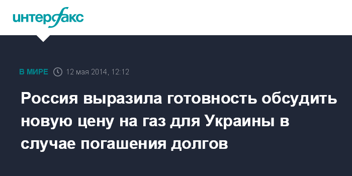 8 мая Россия объявила о введении нового режима предоплаты за газ для Украины, который начнет действовать с 1 июня. Мера принята из-за того, что с марта от НАК "Нафтогаз Украины" не поступило ни одного платежа по контракту. Общий долг Киева достиг $3,508 миллиарда.