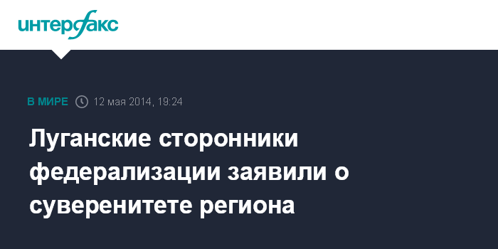 Москва. 12 мая. INTERFAX.RU - Луганская область провозгласила государственный суверенитет по итогам референдума 11 мая.