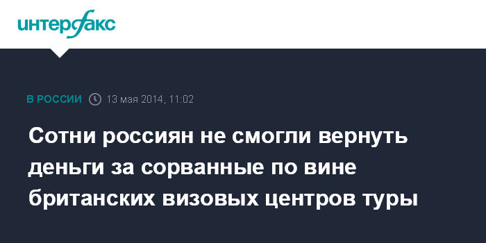 Москва. 13 мая. INTERFAX.RU - Сотни граждан России не могут вернуть деньги за сорванные поездки в Великобританию из-за проблем с выдачей виз в новом визовом центре этой страны, сообщил во вторник Российский союз туриндустрии (РСТ).