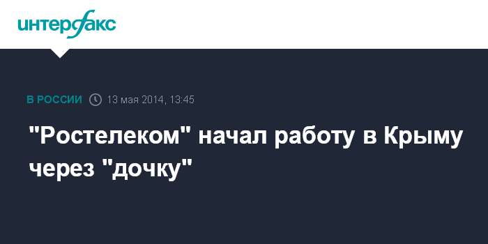 Москва. 13 мая. INTERFAX.RU - ОАО "Ростелеком" начало работу в Крыму через стопроцентную дочернюю компанию "Миранда-Медиа", сообщил журналистам представитель "Ростелекома" Сергей Калугин.