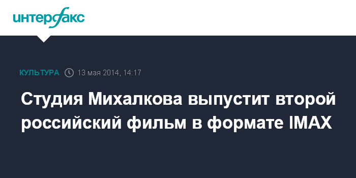 Москва. 13 мая. INTERFAX.RU - Студия "Тритэ" Никиты Михалкова начала работу над вторым российским фильмом в формате IMAX, сообщила газета "Ведомости".