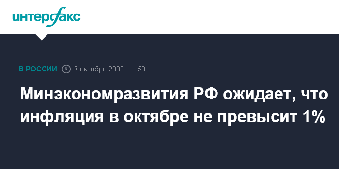 Минэкономразвития РФ ожидает, что инфляция в октябре не превысит 1%