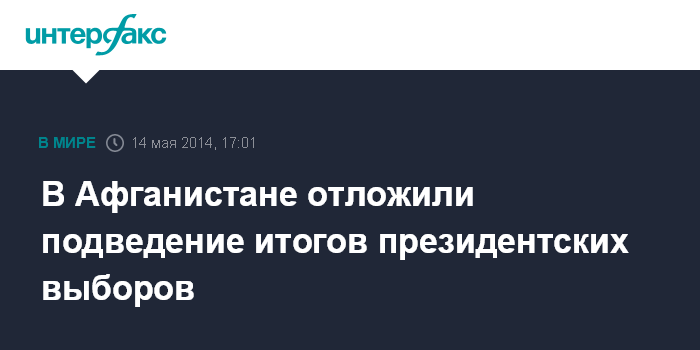 Москва. 14 мая. INTERFAX.RU - Независимая избирательная комиссия Афганистана отказалась от планов объявить в среду окончательные результаты состоявшихся 5 апреля выборов президента страны, сообщают западные СМИ.
