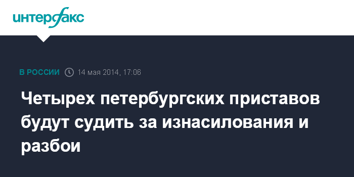 Москва. 14 мая. INTERFAX.RU - В Санкт-Петербурге завершено расследование уголовного дела в отношении четверых бывших оперативников специального назначения УФССП по Ленинградской области, обвиняемых в серии ограблений массажных салонов и в изнасилованиях.