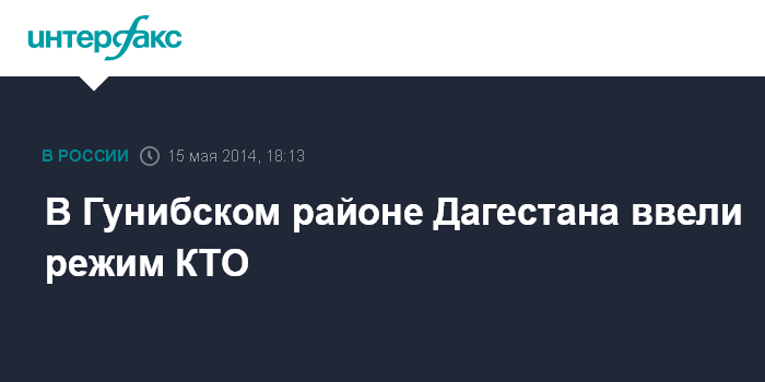 Москва. 15 мая. INTERFAX.RU - На территории Гунибского района Дагестана, где днем были убиты трое полицейских, в четверг вечером ввели режим контртеррористической операции, сообщили агентству "Интерфакс" в республиканском оперативном штабе.