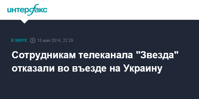Москва. 15 мая. INTERFAX.RU - Съемочная группа телеканала "Звезда" получила отказ во въезде на территорию Украины, передает корреспондент "Интерфакса" с места событий.
