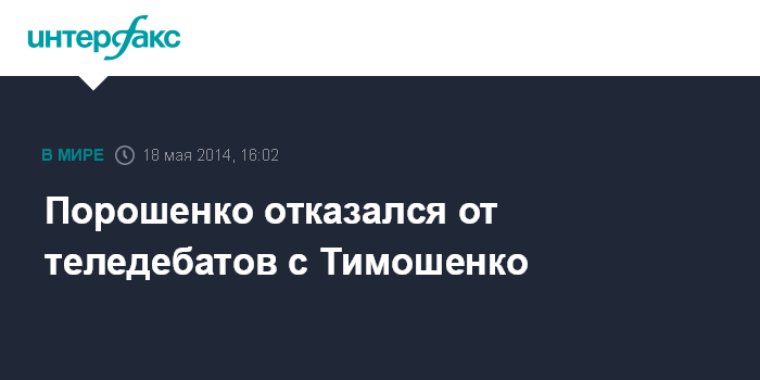 Москва. 18 мая. INTERFAX.RU - Кандидат в президенты Украины, внефракционный народный депутат Петр Порошенко заявляет о готовности участвовать в национальных дебатах в случае проведения второго тура президентских выборов, но не намерен принимать участие в телевизионных шоу, состоящих из нападок оппонентов друг на друга.