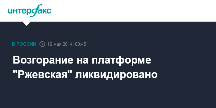 Москва. 19 мая. INTERFAX.RU - Ликвидировано возгорание покрытия на платформе "Ржевская" в центре столицы, сообщил "Интерфаксу" источник в правоохранительных органах.