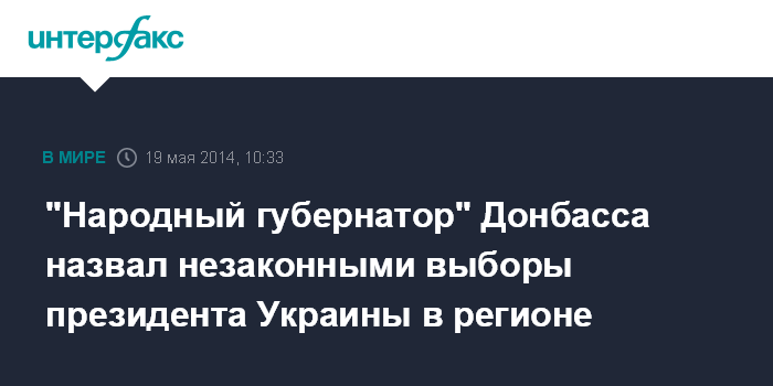 "Нам представляется, что президентские выборы 25 мая не легитимны. Безусловно, мы эти выборы не признаем ... Проведение их на территории наших независимых государств - незаконно и я думаю, не будет даже такой попытки", - сказал Губарев в понедельник в интервью телеканалу "Россия 24".