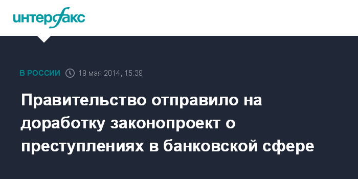 Москва. 19 мая. INTERFAX.RU - Правительство поддержало законопроект, направленный на усиление уголовной ответственности за преступления в банковской сфере, однако поручило МВД доработать документ с учетом замечаний Банка России.