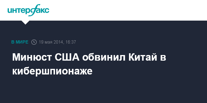 Москва. 19 мая. INTERFAX.RU - Минюст США обвинил нескольких представителей китайского правительства в кибершпионаже в отношении американских фирм, сообщает NBC News со ссылкой на источник, знакомый с ситуацией.