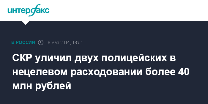 СКР уличил двух полицейских в нецелевом расходовании более 40 млн рублей