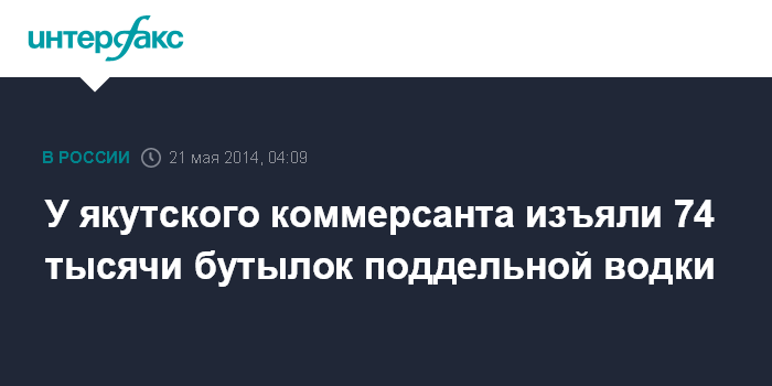 Москва. 21 мая. INTERFAX.RU - Сотрудники полиции в поселке Батагай Верхоянского района Якутии обнаружили у местного предпринимателя контрафактную водку на сумму более 8,5 миллиона рублей. Об этом сообщает в среду пресс-служба регионального управления МВД.