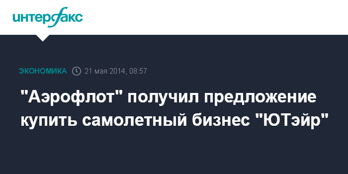 "Аэрофлот" получил предложение купить самолетный бизнес "ЮТэйр"