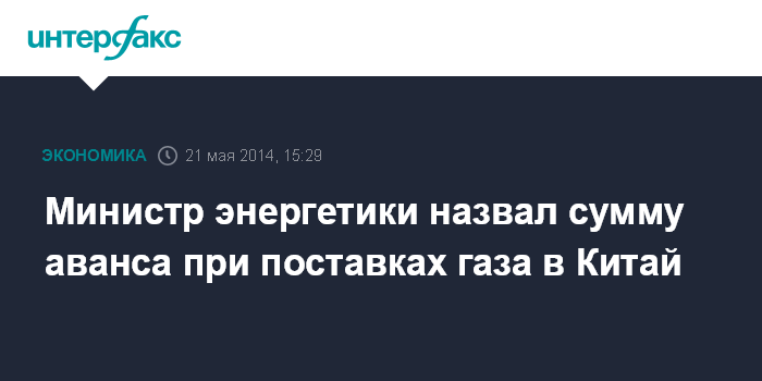 Москва. 21 мая. INTERFAX.RU - Аванс по газовому контракту с Китаем вероятен и может составить до $25 млрд, заявил журналистам министр энергетики РФ Александр Новак по итогам подписания газового контракта с КНР на $400 млрд.