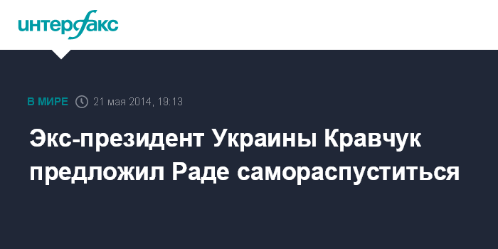 Москва. 21 мая. INTERFAX.RU - Первый президент Украины Леонид Кравчук в ходе заседания "круглого стола" национального единства в среду в Николаеве предложил Верховной раде рассмотреть возможность самороспуска.