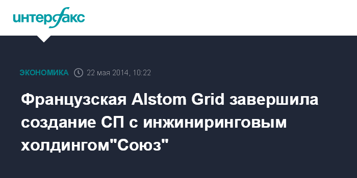 Москва. 22 мая. INTERFAX.RU - Французская Alstom Grid (входит в Alstom) создала совместное предприятие с инжиниринговым холдингом "Союз" и получила в нем контролирующую долю в 51%, сообщила в четверг газета "Коммерсантъ" со ссылкой на члена совета директоров нового СП Андрея Епишина.