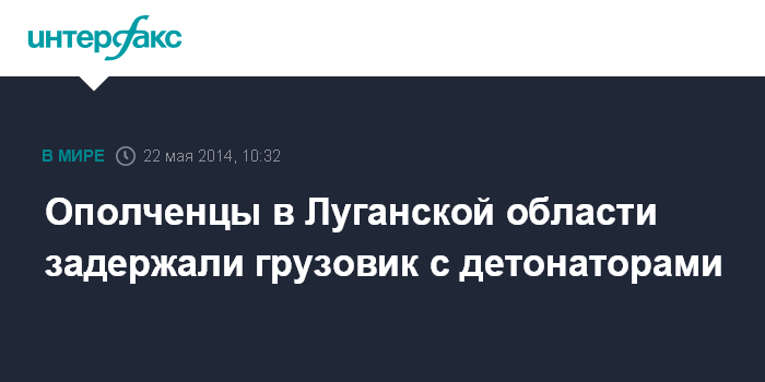 Москва. 22 мая. INTERFAX.RU - Ополченцы самопровозглашенной "Луганской народной республики" минувшей ночью на блокпосту в городе Попасная задержали автомобиль МАЗ, в котором находилось более 1 тыс. шахтных детонаторов и двое вооруженных людей, сообщили "Интерфаксу" в штабе "Объединенной армии юго-востока" в четверг.