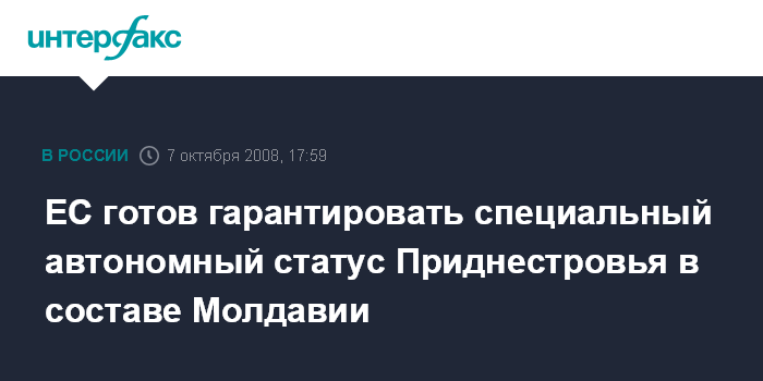 Кишинев. 7 октября. INTERFAX.RU - Специальный представитель Евросоюза в Молдавии Кальман Миджей заявил, что ЕС готов гарантировать специальный автономный статус Приднестровья в составе молдавского государства.