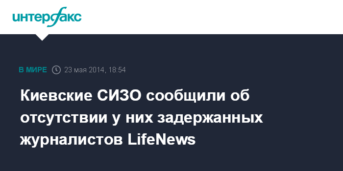 Москва. 23 мая. INTERFAX.RU - LifeNews получил официальный ответ от киевских следственных изоляторов об отсутствии в них задержанных на Украине 18 мая журналистов Олега Сидякина и Марата Сайченко.