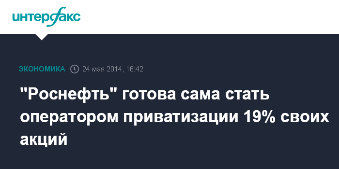 Москва. 24 мая. INTERFAX.RU - НК "Роснефть" хотела бы стать оператором продажи 19-процентного госпакета акций компании, которая может состояться в 2014-2016 годах.