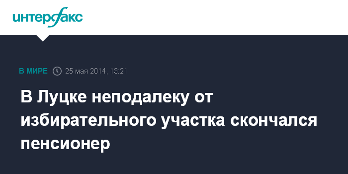 Москва. 25 мая. INTERFAX.RU - В Луцке (Волынская область) неподалеку от избирательного участка на улице Королева скончался 80-летний мужчина. Милиция устанавливает причины его смерти. Как сообщает сектор связей с общественностью УМВД в Волынской области, соответствующая информация поступила в дежурную часть от сына умершего.