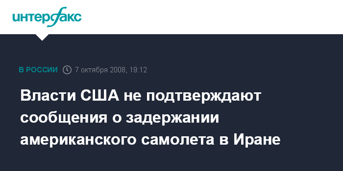 Москва. 7 октября. INTERFAX.RU - В Белом доме не доверяют сообщениям иранских СМИ о задержании в Иране самолета с американскими военными.