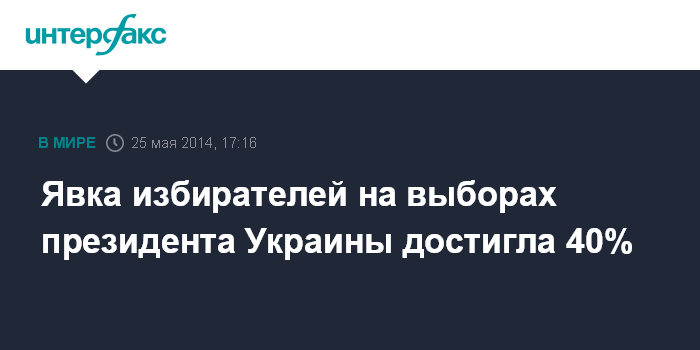 Москва. 25 мая. INTERFAX.RU - Явка избирателей на президентских выборах по состоянию на 15:00 по местному времени составляет 40,41%, сообщает Центральная избирательная комиссия Украины. В ЦИК отметили, что такая явка, зафиксирована на основании данных с 116 округов.