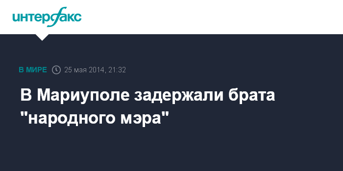 Москва. 25 мая. INTERFAX.RU - Украинская милиция задержала Дениса Кузьменко - брата "народного мэра" города Мариуполь Донецкой области Дмитрия Кузьменко. Об этом в воскресенье сообщает пресс-служба украинского МВД.