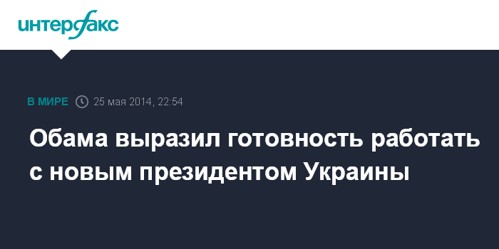 Москва. 25 мая. INTERFAX.RU - Президент США Барак Обама поздравил украинский народ с президентскими выборами и выразил готовность работать со следующим президентом Украины.