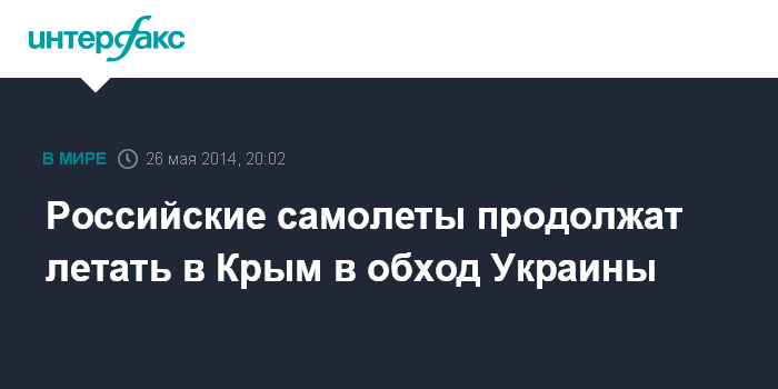 Москва. 26 мая. INTERFAX.RU - Российские самолеты будут летать в обход территории Украины до тех пор, пока украинские власти не изменят своей позиции по поводу принадлежности Крыма, заявил глава Минтранса Максим Соколов.
