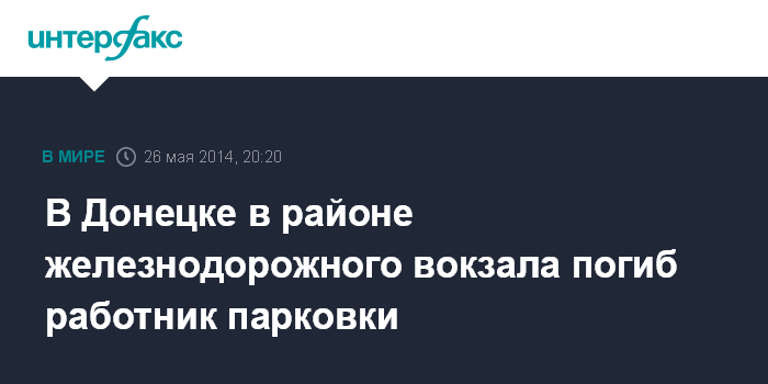 Москва. 26 мая. INTERFAX.RU - В районе автостанции железнодорожного вокзала в Донецке автоматной очередью убит парковщик, разбиты семь окон административного здания Донецкой железной дороги, сообщило в понедельник интернет-издание gorlovka.ua.