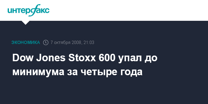 Dow Jones Stoxx 600 упал до минимума за четыре года