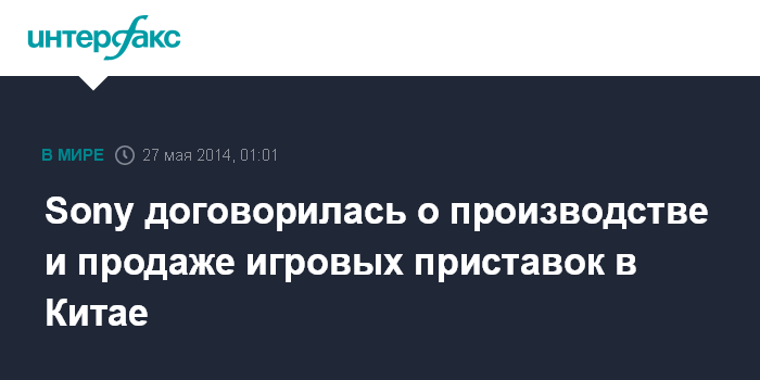 Москва. 27 мая. INTERFAX.RU - Японская компания Sony заключила договор с китайской Shanghai Oriental Pearl о совместном производстве игровых консолей SonyPlaystation в Китае, сообщает BBC.