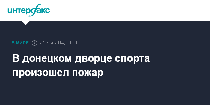 Москва. 27 мая. INTERFAX.RU - В Донецке во дворце спорта "Дружба" произошел пожар.