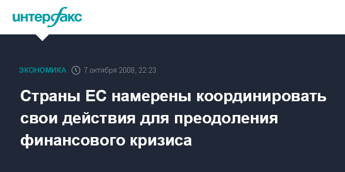 Страны ЕС намерены координировать свои действия для преодоления финансового кризиса