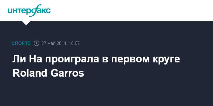 Москва. 27 мая. INTERFAX.RU - Китайская теннисистка Ли На, "посеянная" на Открытом чемпионате Франции под вторым номером, проиграла в первом круге француженке Кристине Младенович - 5:7, 6:3, 1:6.