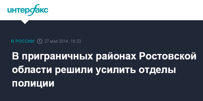 Москва. 27 мая. INTERFAX.RU - Отделы полиции во всех 11 приграничных с Украиной районах Ростовской области усилены мобильными группами, сообщил руководитель ГУ МВД РФ по Ростовской области Андрей Ларионов журналистам во вторник.
