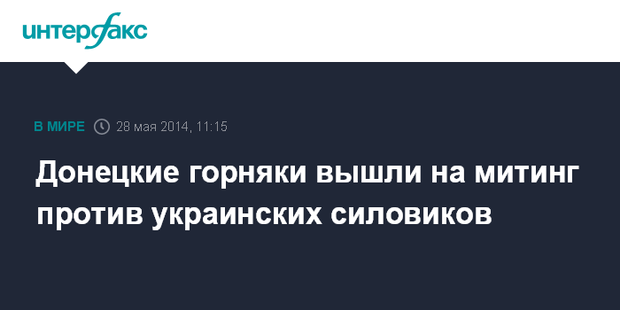 Москва. 28 мая. INTERFAX.RU - Несколько сотен шахтеров собрались утром в Донецке у памятника "Вечный огонь".