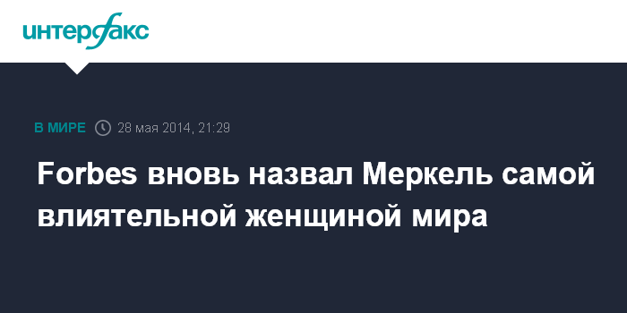 Москва. 28 мая. INTERFAX.RU - Канцлер Германии Ангела Меркель снова возглавила список 100 самых влиятельных женщин мира по версии американского журнала Forbes.