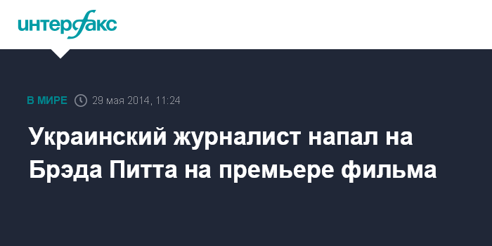 Москва. 29 мая. INTERFAX.RU - Американский актер Брэд Питт подвергся нападению украинского журналиста на премьере фильма в Лос-Анджелесе, сообщает CNN со ссылкой на местную полицию.