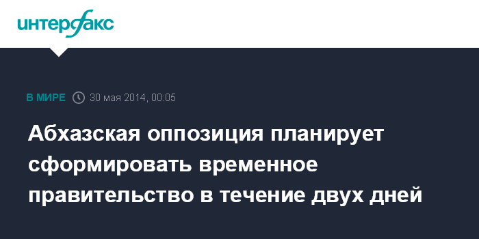 Москва. 30 мая. INTERFAX.RU - Представители оппозиции в Абхазии заявили, что собираются образовать временное правительство в течение ближайших двух дней.